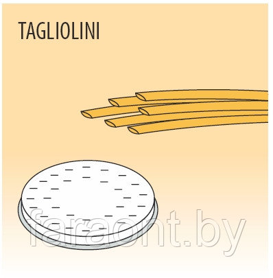 Насадка Fimar TAGLIOLINI рассчитана на работу с паста-машиной MPF 2,5/4. При использовании позволяет получить пасту 2x2 мм.