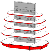Стеллажи островные для электробытовых приборов предназначены для демонстрации и реализации электробытовых приборов. За счет наличия панелей для электророзеток демонстрируемые товары могут находится во включенном состоянии. Так же данная панель позволяет демонстрировать покупателю работоспособность продаваемого оборудования. Имеется возможность комплектации стеллажей полками глубиной до 600 мм, что позволяет размещать на них крупногабаритную технику. По сути, данный тип стеллажей состоит из обычного островного и 2-х торцевых стеллажей, что позволяет размещать продаваемую технику со всех сторон стеллажа.