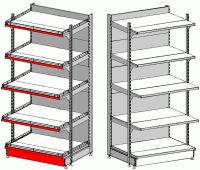 Стеллаж дискаунтерный представляет собой профессиональное торговое оборудование основное назначение которого это хранение, показ и продажа самых разнообразных товаров как промышленной, так и продовольственной групп товаров. Основное место установки данного стеллажа – торговые залы магазинов-дискаунтеров. По сравнению с обычным пристенным стеллажом данная модель комплектуется усиленными полками с дополнительными ребрами жесткости и передними стойками.
