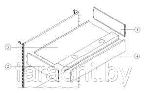 - Стойка из согнутого профиля сечением 28,5х80 t=1,9 мм на которую наварены пластины жесткости. Соседские кронштейны имеют общие пазы для установки полок, благодаря чему зазор между полками получается минимальным;