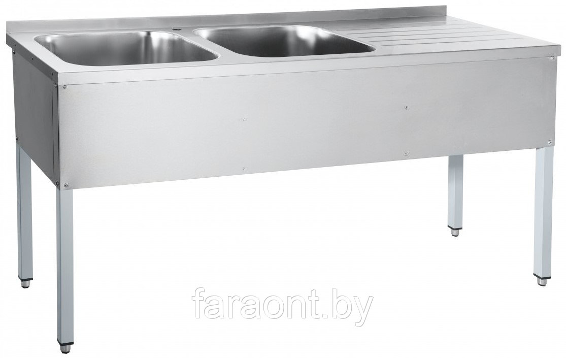 - Столешница с бортом и с двумя вваренными слева мойками, отверстие под смеситель